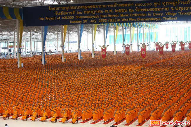 Tato událost je stará více než rok, ale pro její velkolepost jistě stojí za zmínku i nyní. V létě 2010 bylo totiž v rámci Projektu oživení morálky vysvěceno 100 000 mnichů v chrámu Dhammakaya v Thajsku. Opravdovými mnichy se stali na 49 dnů a cílem akce bylo posílit etiku a zlepšit morálku. Velkolepou akci hostilo kromě chrámu Dhammakaya dalších 330 chrámů z celého Thajska.